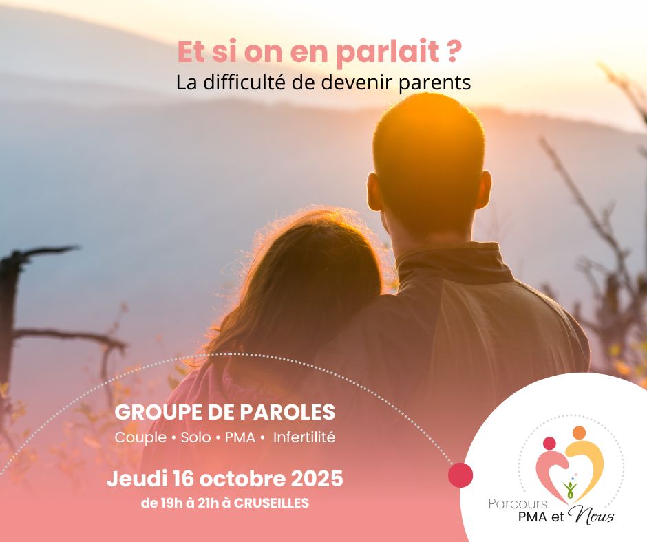 Rendez-vous au cabinet le 16 octobre de 19h à 21h pour un groupe de paroles avec Parcours PMA et Nous.